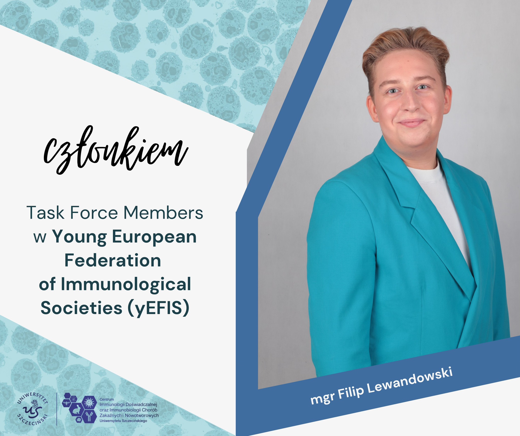 Z przyjemnością informujemy, że mgr Filip Lewandowski został członkiem prestiżowego zespołu Task Force Members w Young European Federation of Immunological Societies (yEFIS).