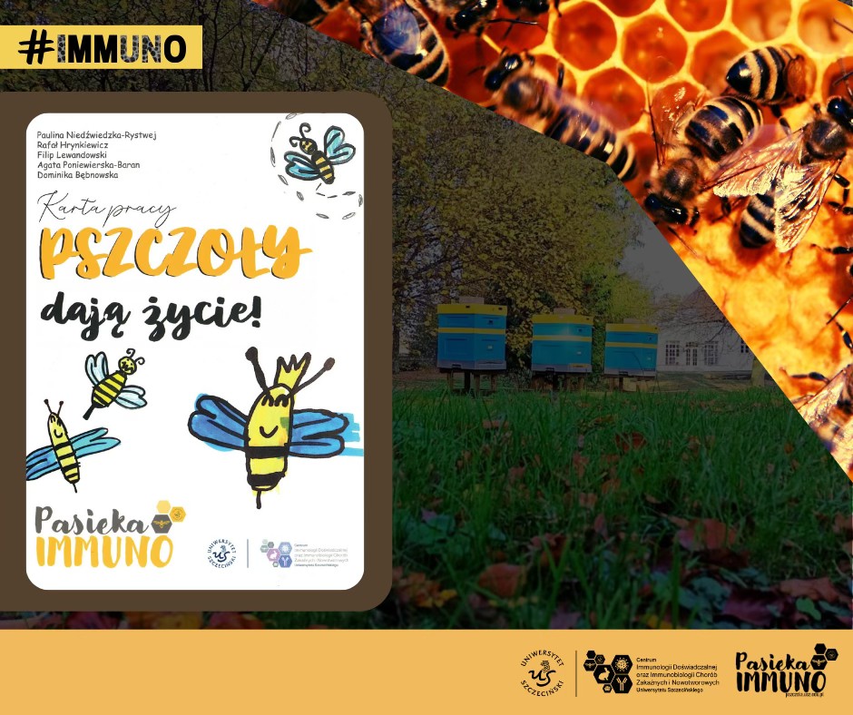 Centrum Immunologii Doświadczalnej oraz Immunobiologii Chorób Zakaźnych i Nowotworowych Uniwersytetu Szczecińskiego, we współpracy z Wydawnictwem Naukowym Uniwersytetu Szczecińskiego, wydało edukacyjną publikację „Pszczoły dają życie!” – pszczelą kartę pracy, która będzie wykorzystywana podczas warsztatów prowadzonych w Pasiece IMMUNO.
